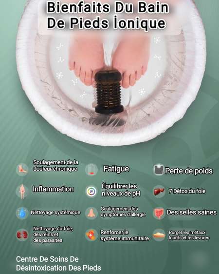 Notre corps a besoin d’être nettoyé des toxines chaque jour, et cela se produit naturellement. Les toxines qui ne peuvent pas être éliminées du corps sont éliminées du corps et stockées dans les tissus adipeux, les articulations, les muscles et le cerveau. Ces toxines peuvent obstruer les parois des membranes cellulaires et empêcher l’absorption des nutriments nécessaires au fonctionnement normal des cellules. De plus, avec le temps, on observe une diminution de la résistance de l’organisme et un affaiblissement des systèmes hypnotique et immunitaire. Cette réduction et cette atténuation sont clairement visibles dans le contexte du pH, car les toxines sont acides et abaissent l’équilibre du pH. Tout comme nous ne pouvons pas nous isoler de la vie, nous ne pouvons pas empêcher suffisamment le contact avec des points toxiques pour éviter ces problèmes. La désintoxication des pieds doit absolument être utilisée plutôt que les avantages de la désintoxication des pieds. C’est le processus d’élimination des toxines accumulées dans le corps. corps en raison de divers facteurs. Les toxines et les métaux lourds sont éliminés du corps grâce à des processus d'ionisation. La détoxification des pieds est un moyen efficace de détoxifier et d’éliminer les toxines du corps. Des électrodes spéciales situées dans vos pieds pénètrent profondément dans les tissus, libérant des toxines qui peuvent augmenter votre niveau d'énergie et contribuer à votre santé.